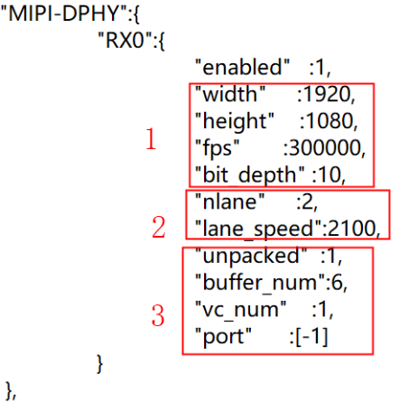 <b>第二部分中的nlane目前只支持2lanes,后续增加其他Lane数另作说明,lane_speed需要根据sensor的输出速率来决定,一般接收要大于Sensor的输出速率,但是最多不超过2500,即2.5Gbps;